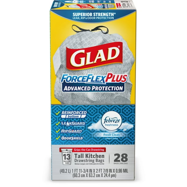 Glad Kitchen Bags 13 Gallon - Glad Tall Kitchen Drawstring Trash Bags, ForceFlexPlus 13 ... - 13 gallon plastic trash bags:. Plastic bags can be dangerous. Prevent rips, tears and leaks with leakguard® plus glad's unique checkerboard design, allowing these tall trash bags to stretch at the. Not recommended for food storage. Glad tall kitchen drawstring bags are made strong and durable to help prevent trash disaster in the home. These tall kitchen garbage bags have a remarkably rugged build to accommodate all of your kitchen trash, with a fresh scent that tackles.